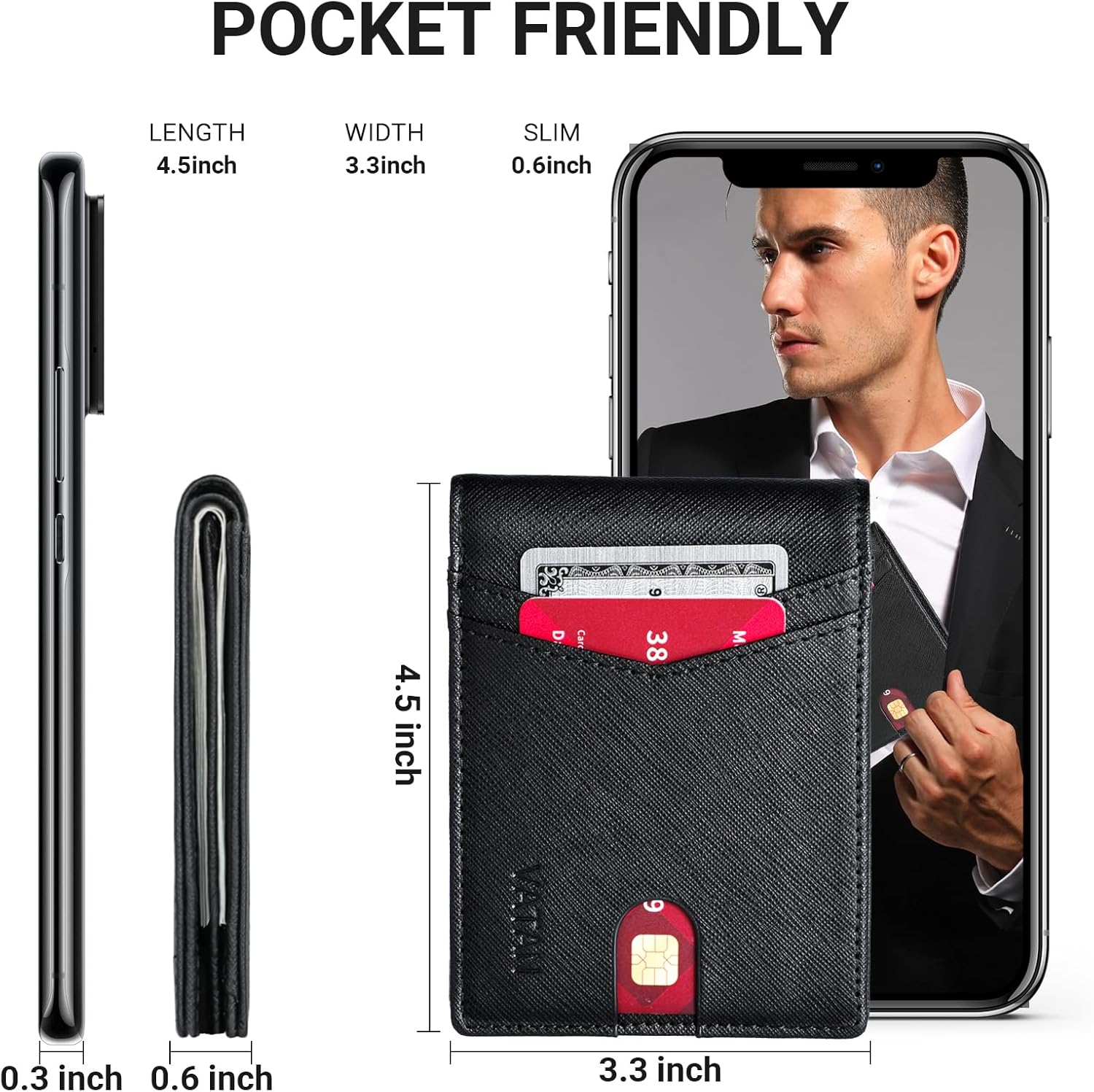 - SLIM BIFOLD WALLET: This minimalist wallet measures 4.5x3.3x0.6 inches, this bifold slim wallet for men can hold up to 15 cards. Its slim profile slips effortlessly into your pocket, making it an ideal choice for everyday carry.