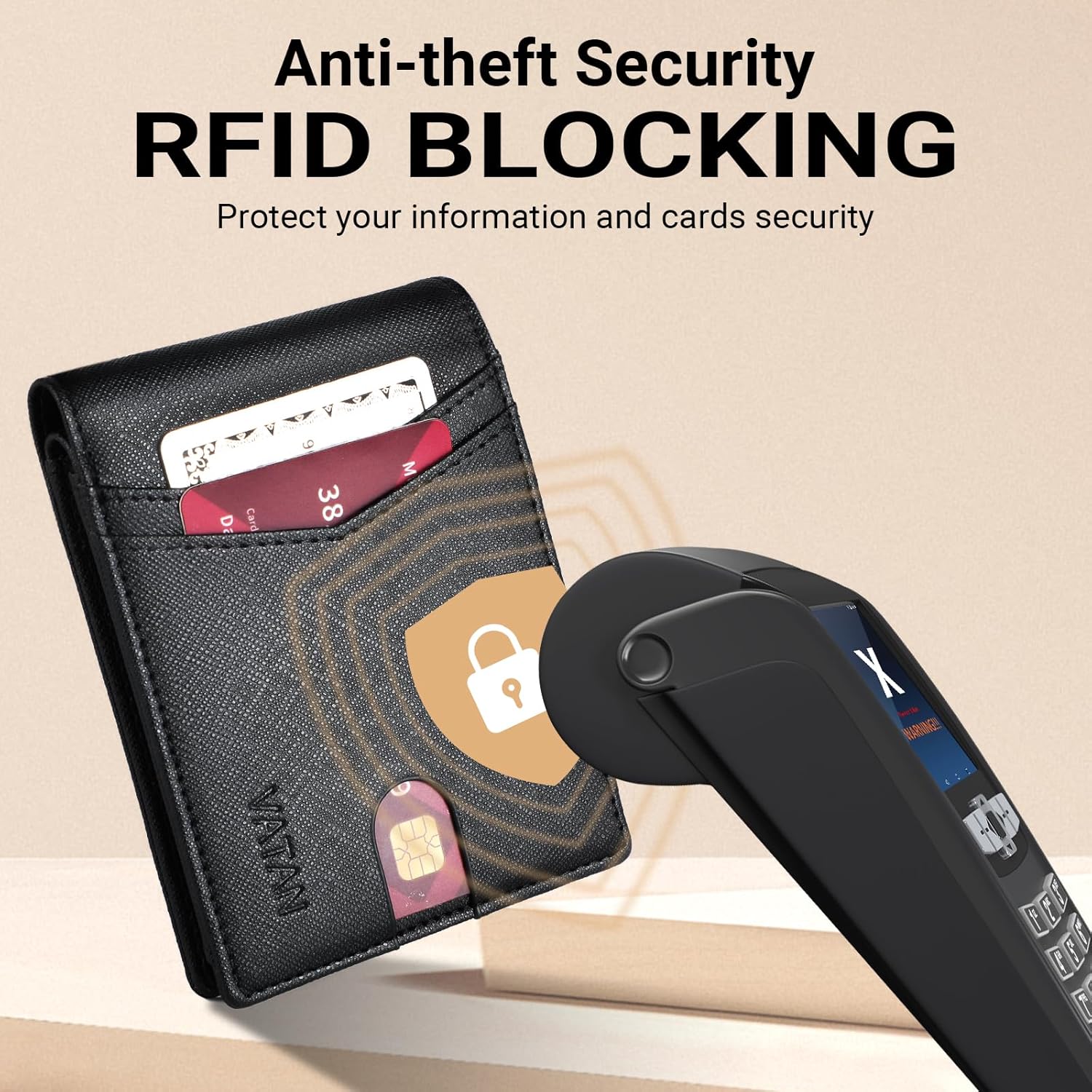VATAN Wallet for Men, Mens Minimalist Wallet Credit Card Holder, Slim Leather Rfid 2 ID Window Large Capacity With Gift Box (Cross Grain Black)