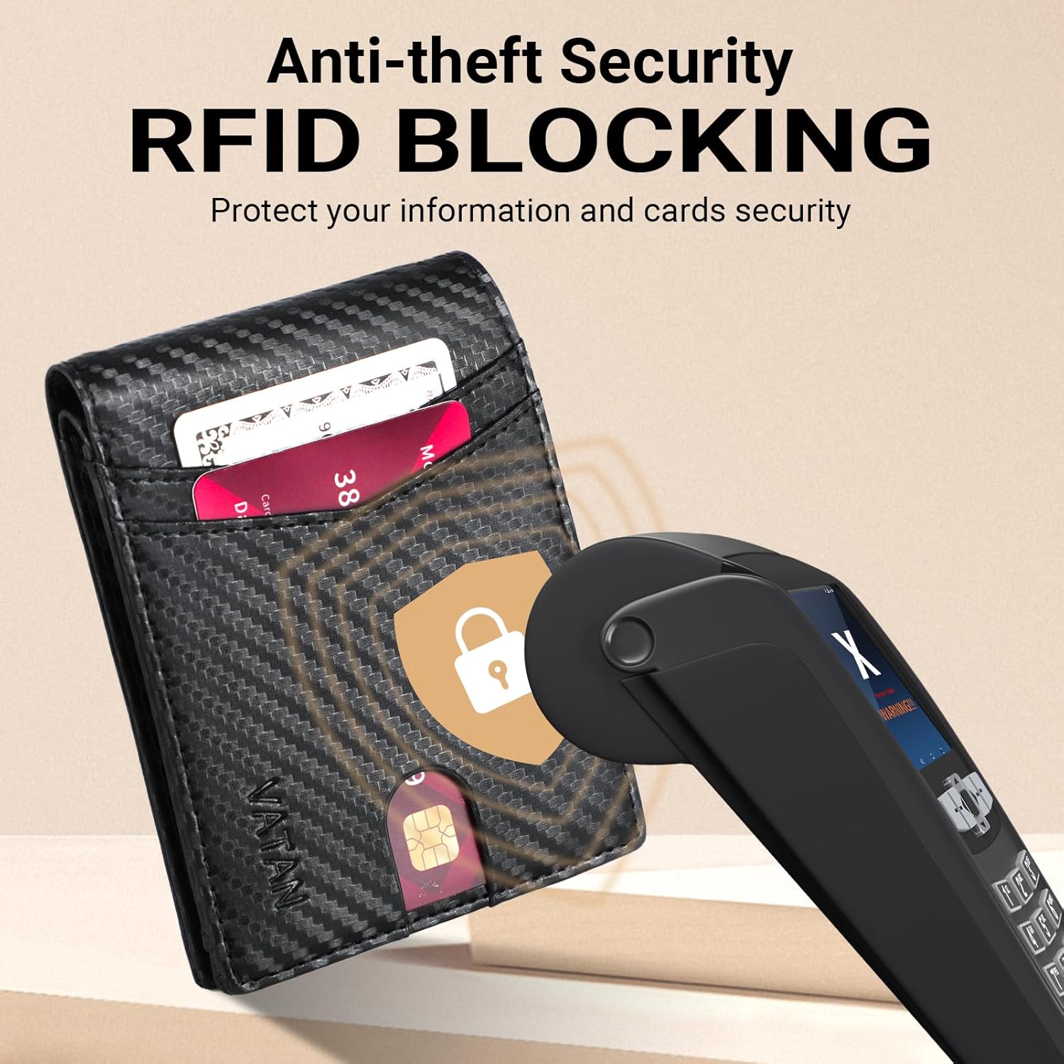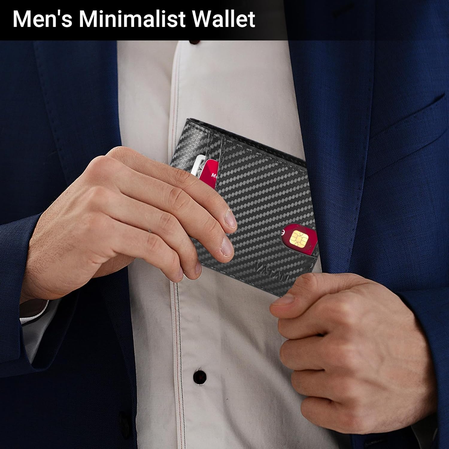VATAN Wallet for Men, Mens Minimalist Wallet Credit Card Holder, Slim Leather Rfid 2 ID Window Large Capacity With Gift Box (Carbon Fiber Black)