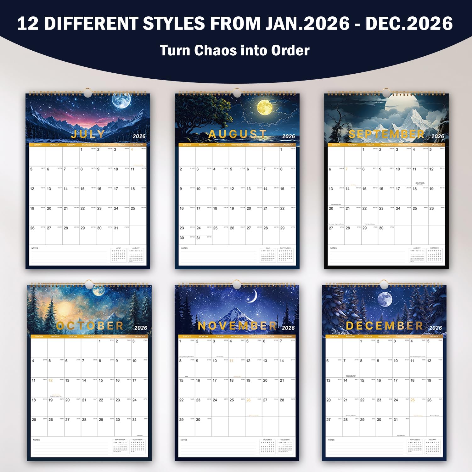 - π² 2026 WALL CALENDAR - This 2026 calendar covers 12 months from January 2026 to December 2026, featuring 12 different patterns, beautiful patterns also be a decoration in your home, the size of this hanging calendar 2026 is 12" x 17", it will accompany you whole year, make your life organization.