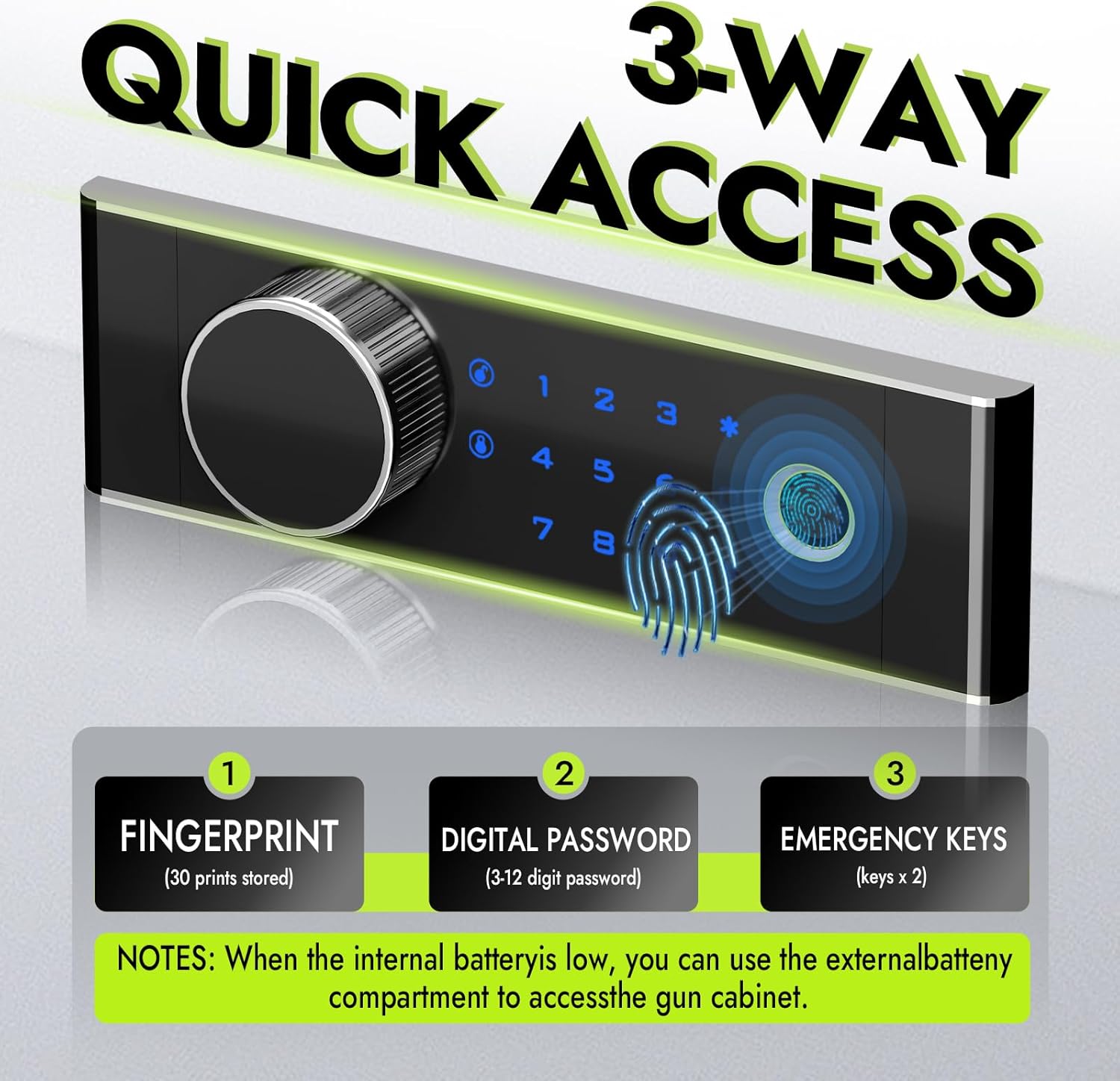 - Lock Type : Biometric, Electronic Combination Lock, Key