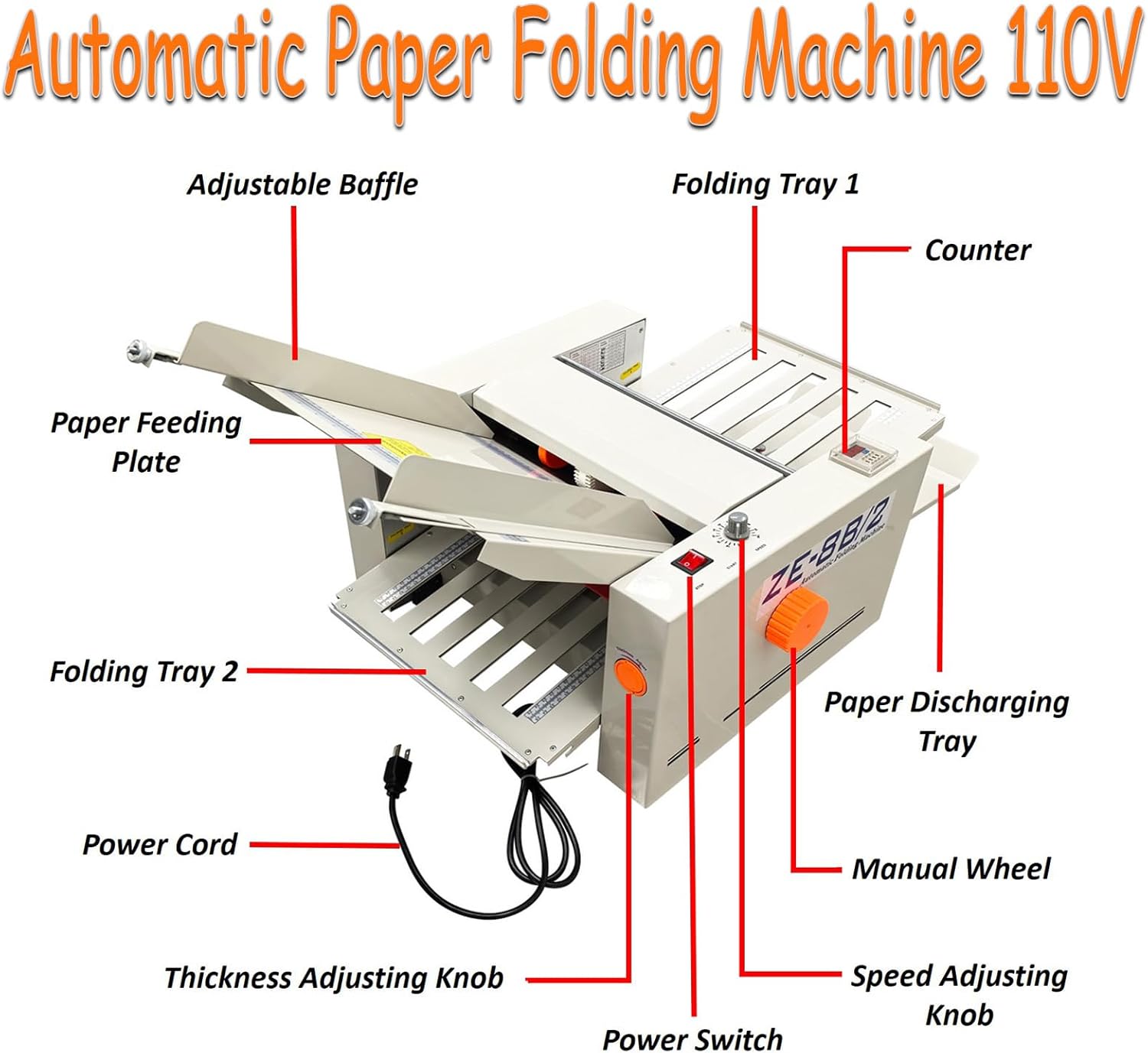 - Versatile Multi-Size Handling: The Origami Machine folds 2"x3" to 12"x27" paper (40-125g thickness), ideal for manuals, documents, and business letters. 2 adjustable plates enable Z-fold, C-fold, Letter-fold for diverse needs